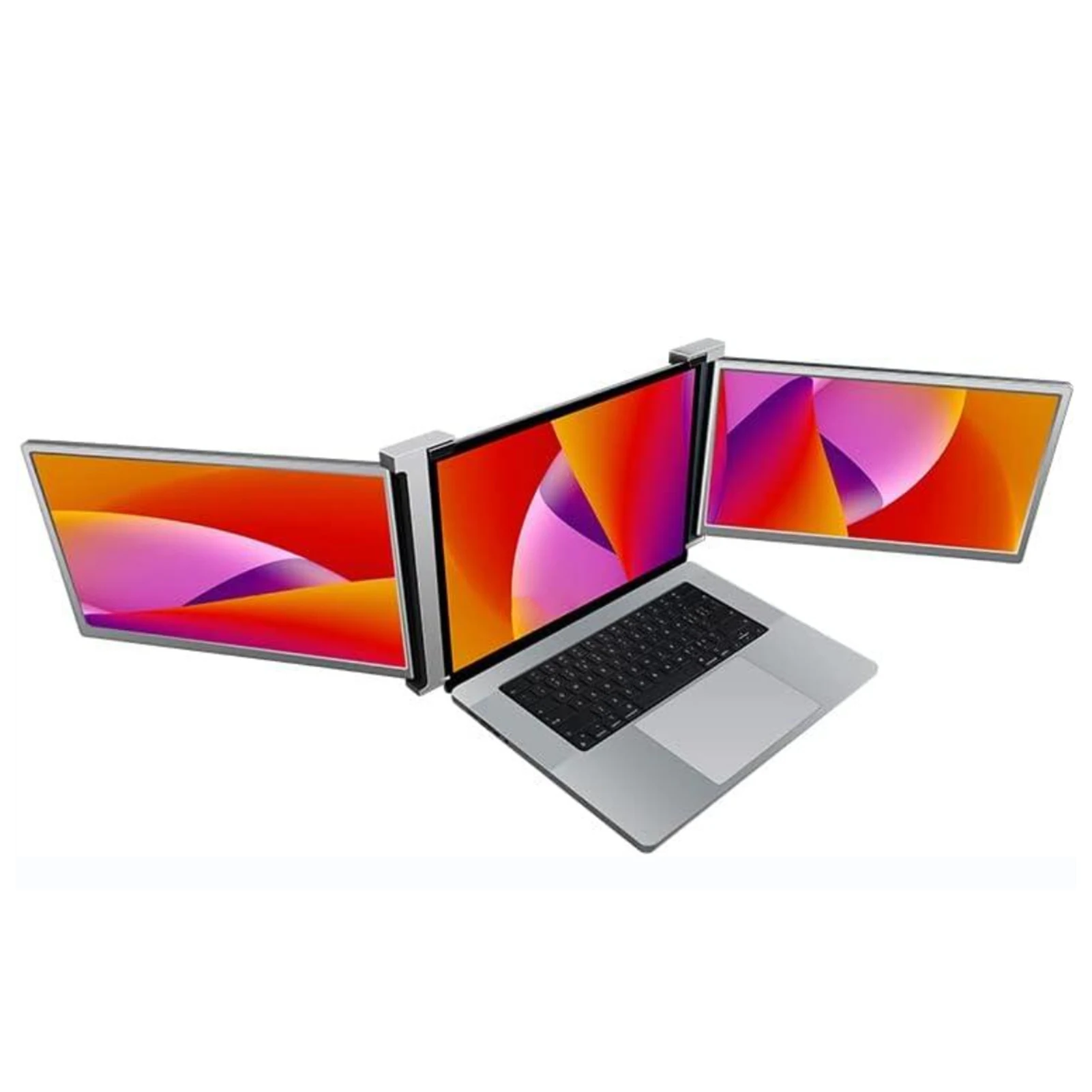 Produkt: 15-tums portabel trippelskärm för laptop, 1920×1080 upplösning, enkel installation, kompatibel med 15–17 tums laptops, färg: Silver