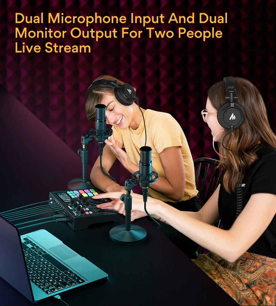 Den är så enkel och intuitiv att använda att du kan börja podda eller streama på bara några minuter. MAONOCASTER förenklar hela skapandeprocessen genom att integrera flera digitala ljudmixningsenheter i en komplett lösning.